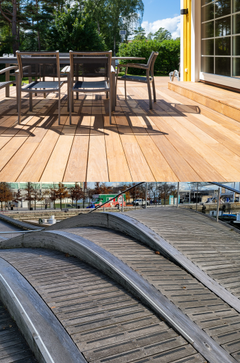 Os decks de madeiras europeias são uma escolha muito boa para o seu espaço exterior. Decks particularmente resistentes e antiderrapantes. O Pinho confere uma estética atraente e durabilidade a preços acessíveis.